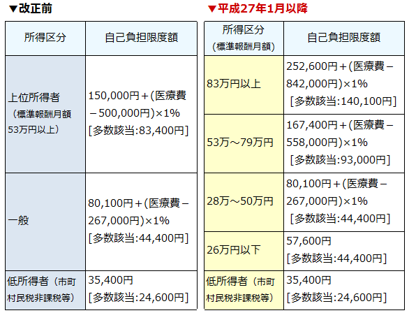 平成27年1月より、70歳未満の高額療養費の自己負担限度額について、所得区分が現行の3段階から5段階に細分化されます。